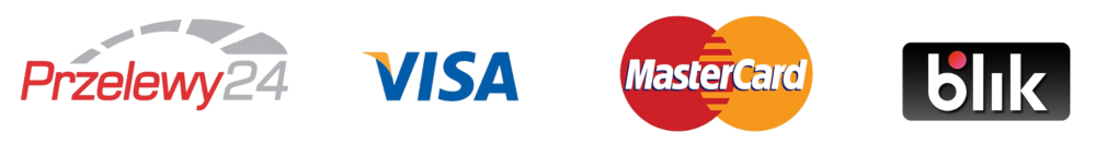 • Za pomocą platformy płatniczej Przelewy24 – operatorem kart płatniczych jest PayPro SA Agent Rozliczeniowy, ul. Pastelowa 8, 60-198 Poznań, wpisany do Rejestru Przedsiębiorców Krajowego Rejestru Sądowego prowadzonego przez Sąd Rejonowy Poznań Nowe Miasto i Wilda w Poznaniu, VIII Wydział Gospodarczy Krajowego Rejestru Sądowego pod numerem KRS 0000347935, NIP 7792369887, Regon 301345068.